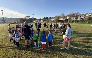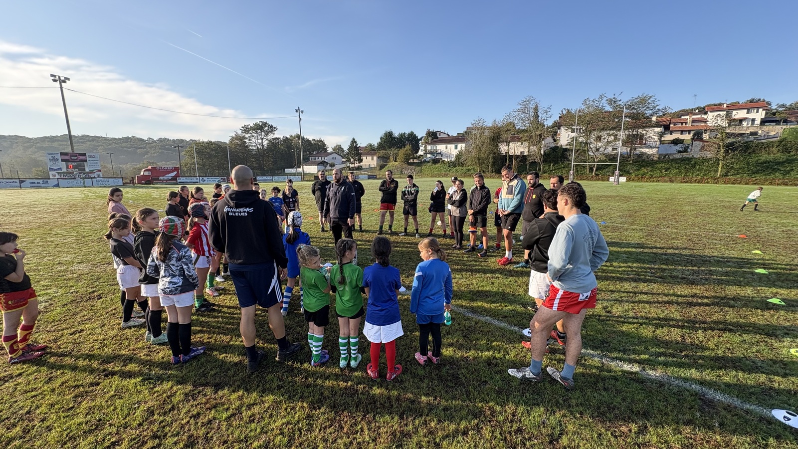 A Arcangues, elles étaient 31. Bien chanceuses, les joueuses ont bénéficié d’un encadrement XXL grâce à François Carillo, CTC bassin 5 qui proposait, en compagnie Alexandre Uhalde, CTD bassins 4-5, une formation d’éducateurs. Un grand merci au club d’ Emak Hor qui a parfaitement orchestré l’entraînement de son école de rugby et l’accueil des filles sur le terrain principal. Merci pour l’accueil, les casse-croûtes et la disponibilité des bénévoles du club.