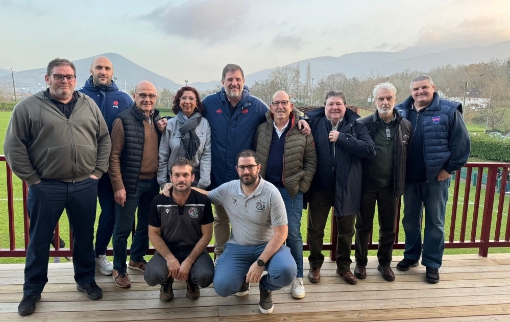 Lors de son premier arrêt, Florian Grill, accompagné de Michel Rechède, président de la Ligue Nouvelle-Aquitaine, a été reçu par Pierre Lavigne, le président de Azkaine errugbia et les représentants des quatre clubs qui composent l’Entente de la Nivelle : Ascain, Ciboure, Saint-Jean-de-Luz et Urrugne.