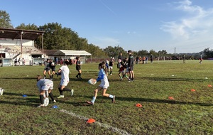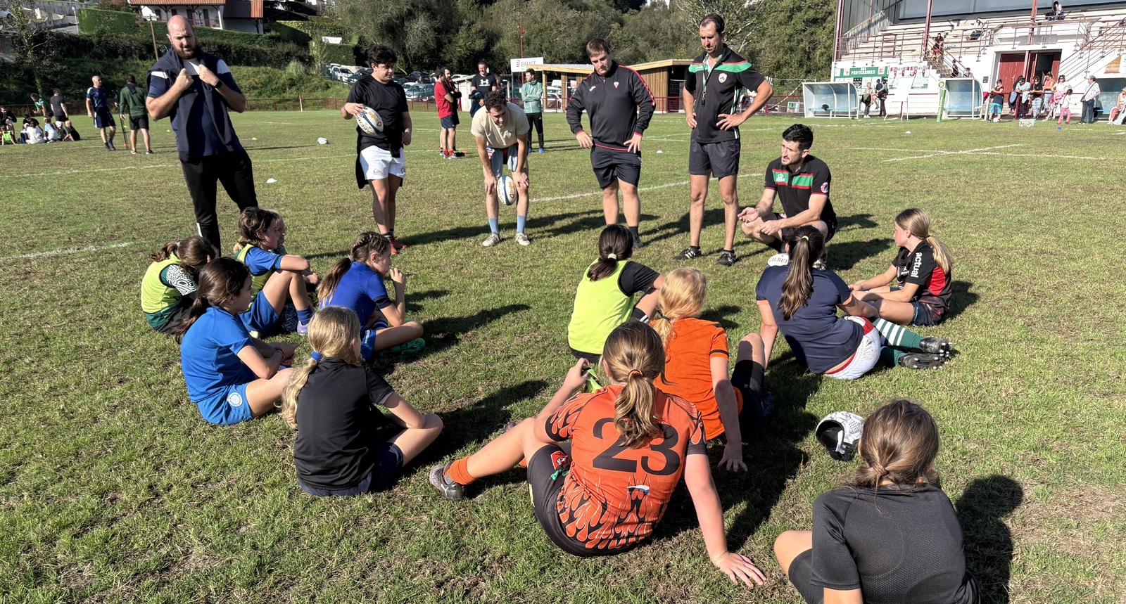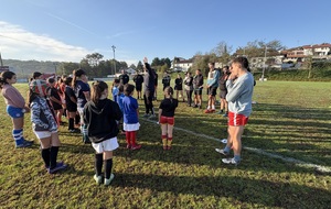 A Arcangues, elles étaient 31. Bien chanceuses, les joueuses ont bénéficié d’un encadrement XXL grâce à François Carillo, CTC bassin 5 qui proposait, en compagnie Alexandre Uhalde, CTD bassins 4-5, une formation d’éducateurs. Un grand merci au club d’ Emak Hor qui a parfaitement orchestré l’entraînement de son école de rugby et l’accueil des filles sur le terrain principal. Merci pour l’accueil, les casse-croûtes et la disponibilité des bénévoles du club.